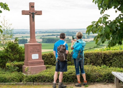 Zornheim ist der perfekte Abstecher, wenn man dem Trubel von Mainz entfliehen will. Gleich zu Beginn der Hiwweltour Zornheimer Berg wartet das Ruhkreuz mit einer echten Überraschung. Die Skyline von Frankfurt ist an klaren Tagen sehr gut sichtbar und zeigt, wie nah Rheinhessen am Rhein-Main-Gebiet liegt. Wer lieber keine Hochhäuser sehen möchte dreht sich einfach um und blickt auf die renaturierte Selz und das endlose Reebenmeer. Nicht umsonst ist das Ruhkreuz bei Zornheim in diesem Jahr zur „Schönsten Weinsicht 2020“ gewählt worden. Unbedingt noch einen Abstecher in den Ort einplanen. Der Lindenplatz mit dem Drei-Grazien-Brunnen und der Kirche gehört zu den schönsten Plätzen in Rheinhessen.