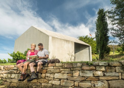Architektonisch eines der spannendsten Gebäude in Rheinhessen. Ultramodern steht dieses etwas andere Weinbergshäuschen in den Weinbergen auf der Hiwweltour Neuborn. Das Weinberghaus Perka ist ein Versuchs- und Forschungsgebäude der Technischen Universität Kaiserslautern und besteht aus hochfestem Beton, mit dem dort experimentiert wurde. Der Abstecher lohnt sich. Oben angekommen warten Stühle und Bänke und ein wunderschöner Blick auf Rommersheim und das rheinhessische Hügelland.