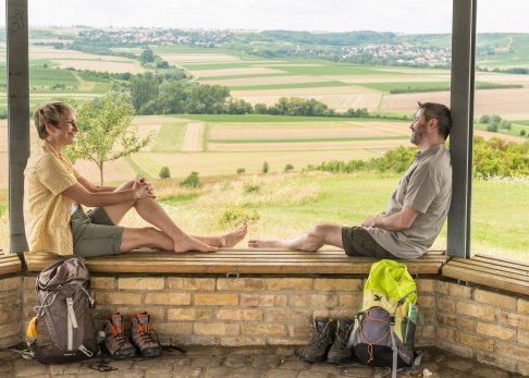 Wer das Selztal von seiner schönsten Seite sehen will, muss zum Pavillon auf der Hiwweltour Stadecker Warte. Das luftige Gebäude bietet einen herrlichen 360° Rundumblick auf Weinberge, Dörfer und Quellwälder. Kein anderer Aussichtspunkt in Rheinhessen vermittelt so gut das Gefühl von Weite und Freiheit. Nichts steht zwischen einem und dem endlosen Blick über die Weinkulturlandschaft. Weitergehen lohnt sich aber auch. Der Abstieg vom Pavillon ins Saubachtal ist einer der schönsten Abschnitte des Wanderweges.