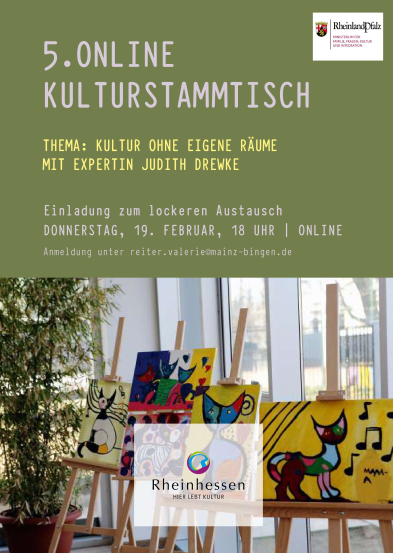 "Kultur ohne eigene Räume“: Der Online-Kulturstammtisch des Regionalen Kulturmanagements Rheinhessen geht am 19. Februar in die 5. Runde.