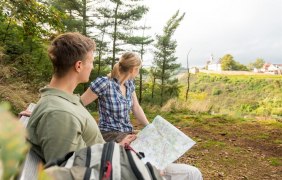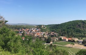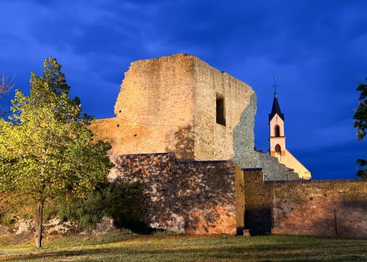 Die Burgruine liegt unmittelbar östlich oberhalb des Dorfes.