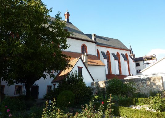 Entstehung des Klosters: Das ehemalige Franzikanerkloster liegt unterhalb des Markplatzes und ist heute dem Hl. Bartholomäus geweiht. Kreuzgang und Klosterbauten, die sich an die Südwand anschlossen, sind verschwunden. Dass es sich um eine Bettelordenskirche handelt, erkennt man aufgrund des Fehlens von Querhaus und Seitenschiffen.