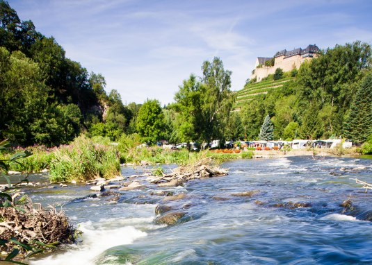 Der naturbelassene Campingplatz am Zusammenfluss von Nahe und Alsenz bietet 110 Stellplätze, auch für Wohnmobliele sanitäre Anlagen, Anschluss an Wanderwege, in der Nachbarschaft befindet sich ein Freibad. In wenigen Minuten ist der Kurpark Bad Münster am Stein fußgängig erreichbar. Mit dem Fahrrard erreicht man in zehn Minuten das Salinental und das sich daran anschließende Kurgebiet Bad Kreuznach. Der Campingplatz liegt unweit des Naheradweges, des Alsenzradweges und ist an das Wandergebiet der Vitaltour Rheingrafenstein angebunden.