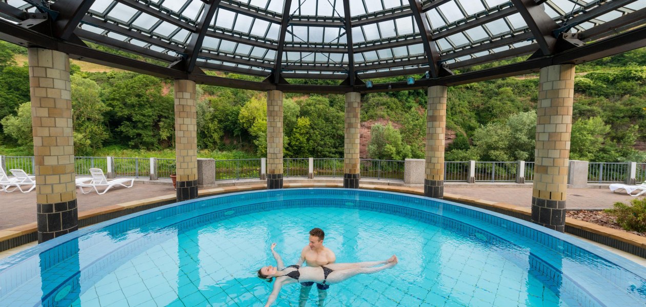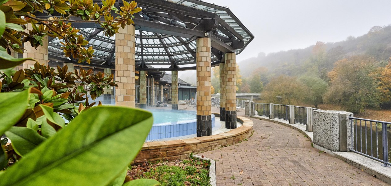 Die drei Innen- und Außenbecken mit 33° warmer Sole (salz- und mineralhaltiges Wasser) und einer sehr verträglichen Salzkonzentration von etwa 1,5 %, ein Süßwasserpool, großzügige Ruhezonen im Innen- und Außenbereich und regelmäßige Aquagymnastik-Kurse laden zum Relaxen und Energietanken ein. Die Sole wird aus einer 500 Meter tiefen Quelle gewonnen und per Soleleitung aus dem Salinental in das Thermalbad befördert.