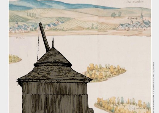 Das noch sichtbare Fundament ist ein Relikt des letzten von Menschenkraft bewegten Krans, der um 1680 erbaut wurde. Im mittigen Schacht war der drehbare Kranständer eingelassen, an dem die beiden Treträder und der Ausleger befestigt waren. Zwei Knechte mussten in den Rädern laufen und so für den Antrieb der Anlage sorgen. Das Löschen und Laden war gebührenpflichtig. Über diese Einnahmen führte der Kranschreiber Protokoll. Kranmeister war der Schultheiß. Eine Kranordnung regelte die Abläufe, die Arbeitszeiten und die Löhne. Dieser Kran wurde zwischen 1690 und 1694 zerstört und wurde trotz Bemühungen des pfälzischen Kurfürsten nicht wieder vollständig aufgebaut. Das Kranrecht war mehrfach Gegenstand machtpolitischer Auseinandersetzungen zwischen den konkurrierenden kurpfälzischen und kurmainzer Landesherren.