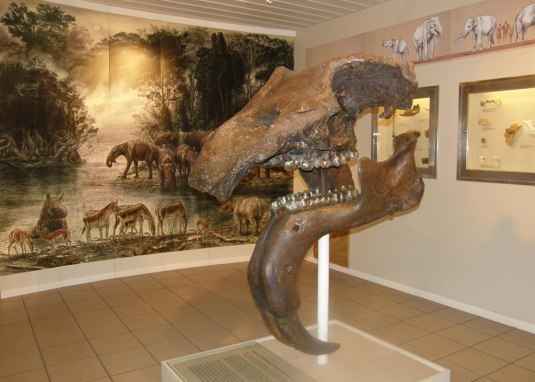 Im Museum werden rund 10 Millionen Jahre alte Originalfunde aus dem Urrhein bei Eppelsheim und Abgüsse bzw. Kopien seltener Fossilien ausgestellt. Es handelt sich dabei unter anderem um Zähne und Knochenfragmente von Nashörnern, Menschenaffen und Rüsseltieren wie Dinotherien und Mastodonten. Einzelstücke vom Urpferd, Tapir, Muntjakhirsch, Bärenhund, Biber und Schwein sind ebenfalls zu sehen. Der Mittelpunkt des Museums ist der Abguss des 1835 von Klipstein und Kaup geborgenen Oberschädels von einem Dinotherium (Dinotherium giganteum). Der Fund war damals eine Weltsensation. Das Dinotherium ist ein weitläufiger Verwandter des Elefanten und erreichte eine Größe von ca. 3,50 m. Seine nach unten und hinten gekrümmten Stoßzähne befinden sich im Unterkiefer und dienten offenbar zum Abschälen von Baumrinde. Der Abguss ist ein Geschenk des Naturhistorischen Museums Basel. Das Original ist im Naturhistorischen Museum London ausgestellt.