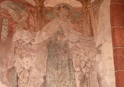 Die Kirche enthält romanische, gotische und barocke Elemente. Der flachgedeckte Chor wurde Mitte des 15. Jahrhunderts errichtet und mit umfangreichen Wandmalereien ausgestattet. An der linken Wand ist eine große Schutzmantelmuttergottes zu sehen. Zwischen den vier Maßwerkfenstern sind Heilige dargestellt. Im Sockelgeschoss ist ein umlaufender Rankenteppich aufgemalt, als Bekrönung der Figuren eine reiche Scheinarchitektur.