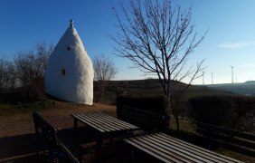 Einer der schönsten Trulli steht in Flonheim auf dem Adelberg. Man kann ihn zu Fuß über die "Hiwweltour Aulheimer Tal" erreichen, eine wunderschöne Rundwanderung mit schönen Aussichten und Rastplätzen, einen davon - mit Tischen und Bänken - direkt am Trullo. Sollte schlechtes Wetter aufziehen, findet man nach wie vor im Trullo einen sicheren Unterschlupf.