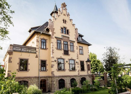 Einzigartiger Ort mit authentischem Ambiente und inspirierender Kulisse. Denkmalgeschütztes Weingut mit Restaurant im Schlösschen und Weingarten, historischer Gartenanlage, Kulturgewölbe und Hotel im Fachwerkhaus. Ein Ort für Menschen,