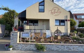 Das Tacheles Landrestaurant wird seit März 2018 von Diana Schmitt geführt, die Ihre Ausbildung zur Köchin in Sternerestaurants und gehobenen Häusern absolviert hat. Sie verwöhnt Sie mit ländlichen, regionalen und saisonalen Speisen. Besondere Spezialität sind die abwechslungsreichen Wildgerichte aus eigenem Jagdrevier. Im Sommer auch auf der Gartenterrasse zu genießen. Zu jedem guten Essen gehören bekanntlich auch gute Weine - hier aus ökologischem Anbau, vom eigenen Weingut und Demeter zertifiziert. Außerdem im Angebot: Feiern im Wingertsheisje am Goldbergbrunnen, Planwagenfahrten, Weinproben, Familienfeiern, Firmen-Events, Tagesprogramme.
