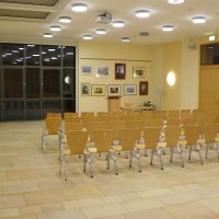 170 qm, mit Empore, bis zu 200 Plätze mit Empore und Tribüne, Theaterbühne, Reihenbestuhlung oder parlamentarische Bestuhlung, professionelle Licht- und Tontechnik, Leinwand, Beamer, Laptop, Flipchart, Overhead-Projektor