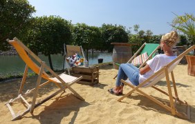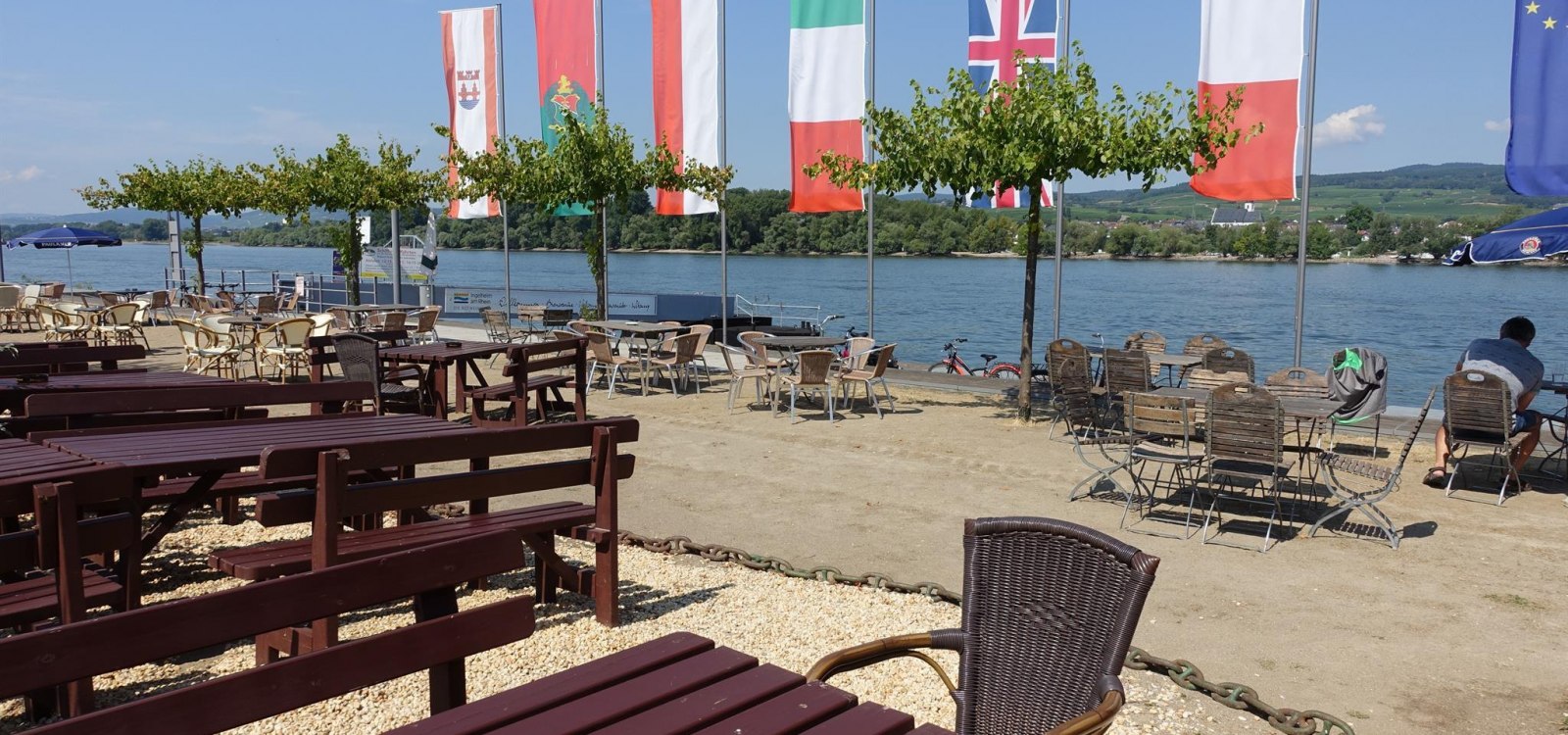 Direkt am Rhein gelegen, bei Stromkilometer 519, finden Sie unseren Ingelheimer Sommergarten. Mit dem Frei-Weinheimer Hafen auf der einen und Vater Rhein auf der anderen Seite lässt man es sich auf unserem "Eiland" gerne gut gehen. Schiffe, zum Greifen nah, herrliche Ausblicke und der Sonnenuntergang am Sommerabend laden zum Verweilen ein.