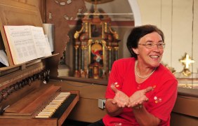 noch erhaltene Stummorgel stammt aus der dritten Generation von Friedrich Carl Stumm 1787/88. Deckengemälde von 1937 des Kirchenmalers und