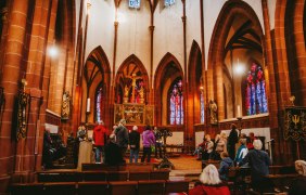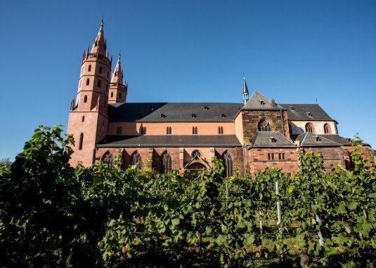 Die inmitten von Weingärten der berühmten "Liebfrauenmilch" aufragende Kirche wurde anstelle eines Vorgängerbaues über einem spätantiken Gräberfeld errichtet. Die Bauzeit zog sich mit Planänderungen und Unterbrechungen von 1276 bis 1465 hin. Eine Inschrifttafel nennt das Datum der Vollendung. Trotzdem bietet die Kirche ein fast lehrbuchhaftes Bild einer gotischen Basilika mit Chorumgang, Doppelturmfassade und figurengeschmücktem Westportal. Der große Bau besticht durch eine klare, fast reduzierte Architektur. Von der Ausstattung ist aufgrund der Zerstörungen des Pfälzer Erbfolgekrieges nur wenig erhalten, wie das wundertätige, überlebensgroße Gnadenbild aus der Mitte des 13. Jahrhunderts, das Ziel einer großen Marienwallfahrt war.