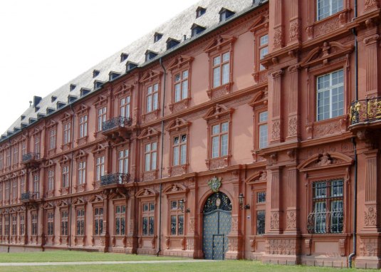 Wer über die Theodor-Heuss-Brücke nach Mainz kommt, dem fällt es gleich ins Auge: das markante, sandsteinrote Kurfürstliche Schloss, das an der Rheinfront eine Länge von 75 Metern einnimmt. Es ist, als wolle die Stadt ihren Besuchern sogleich den Glanzpunkt ihrer Geschichte - ihre Blütezeit als kurfürstliche Residenz - vor Augen führen.