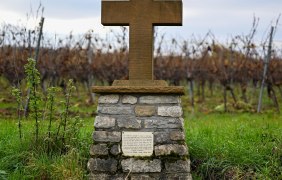 ‚Am Steinernen Kreuz‘ bezeichnet den umliegenden Gemarkungsteil. Die Ortsgemeinde errichtete daher hier 2002 ein Flurkreuz auf einem Sockel aus Gundersheimer Kalksteinen.