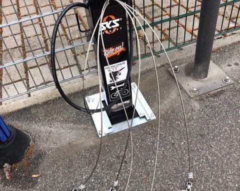 Die Radreparaturstation liegt am Sportplatz des Oppenheimer Gymnasiums - direkt an der Rheinterrassenroute.
