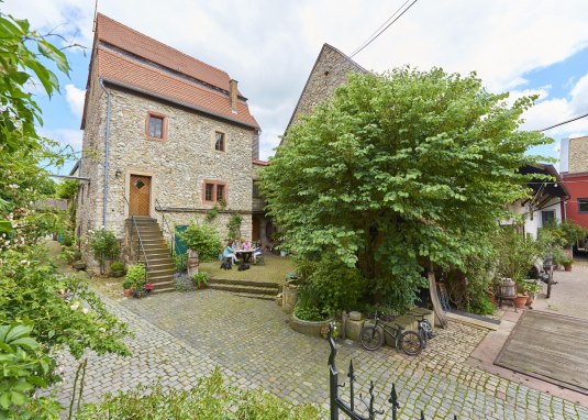 Unser Hof ist historisch gewachsen und im Schatten des mittelalterlichen Wohn- und Wehrturms befindet sich dein Schlafplatz. Der mediterrane Innenhof mit verschiedenen Sitzplätzen lädt zum Verweilen und Genießen ein.