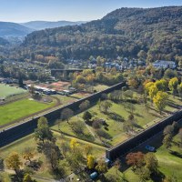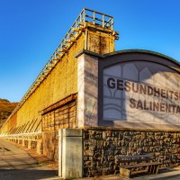Zwischen 70 und 350 Meter lang und 9 Meter hoch sind die einzelnen Gradierwerke, eingebettet in ein felsiges Tal, an denen Thermalheilwasser aus der 500 Meter tiefen Quelle herab rieselt und mit einer Verdunstungsfläche von 16.000 Quadratemetern im Salinental eine frische Meeresbrise wehen lässt.