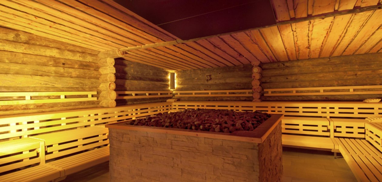 Sie ist aufgeteilt in einen Innen- und einen Außenbereich. Drinnen erwarten die Gäste eine finnische Sauna, eine Meditationssauna sowie ein Dampfbad. Abkühlen können sich die Besucher in einem Eisbad sowie einem normalen Tauchbad. Ein Genuss für alle Sinne sind die Erlebnisduschen. Im Kaminzimmer mit offenem Kamin finden die Saunagänger anschließend die Ruhe und Erholung, die zur Vorbereitung auf den nächsten Saunagang notwendig ist.