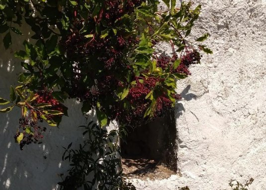 Eines der vielen Trulli, der Weinbergshäuschen mit dem italienischen Namen, die als Schutzhütten im Weinberg dienten. Dieses steht direkt an einem alten Hohlweg.