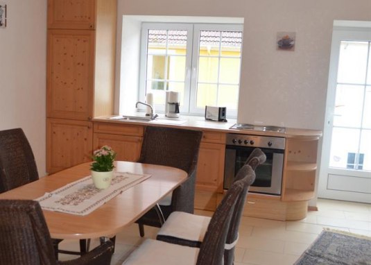 Helle, freundliche und gut ausgestattete Nichtraucher-Ferienwohnung, 70 qm groß, über der Kuhkapelle im Weingut. Die komplett ausgestattete Wohnung befindet sich im Herzen von Westhofen, der größten Weinbaugemeinde Rheinhessens. In der Küche stehen Herd, Kühlschrank, Kaffeemaschine, Toaster und Wasserkocher bereit. Die großzügige Wohn- und Essküche verfügt über SAT-TV.