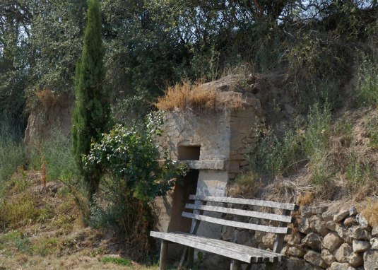 Ein besonderes Anleigen des Winzers ist es, dass auch die Trockenmauern neu augebaut oder repariert werden. Links neben der Tür sind sogar Grabsteine als Stützmauern eingebaut.