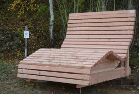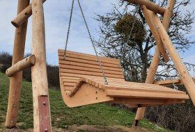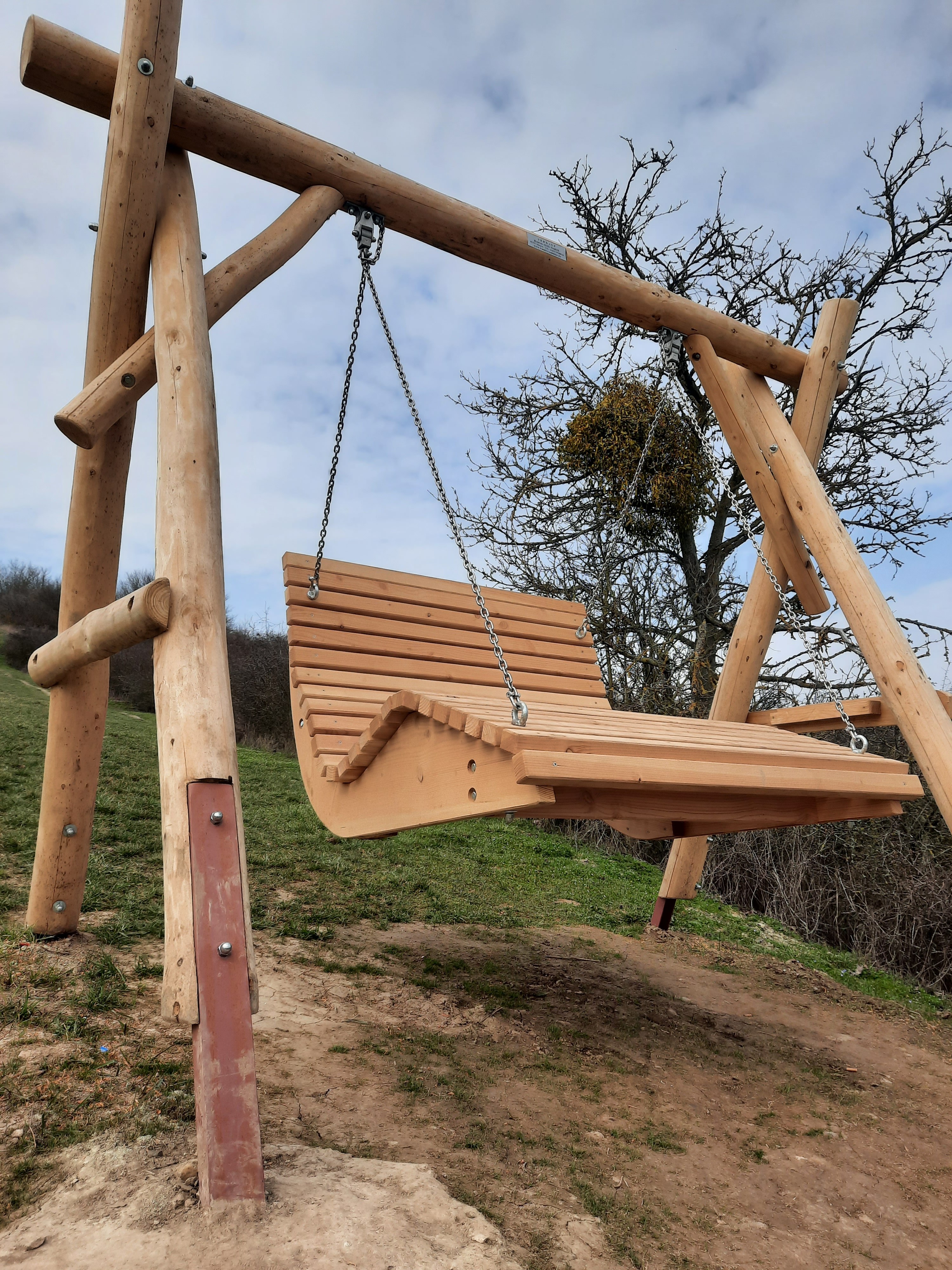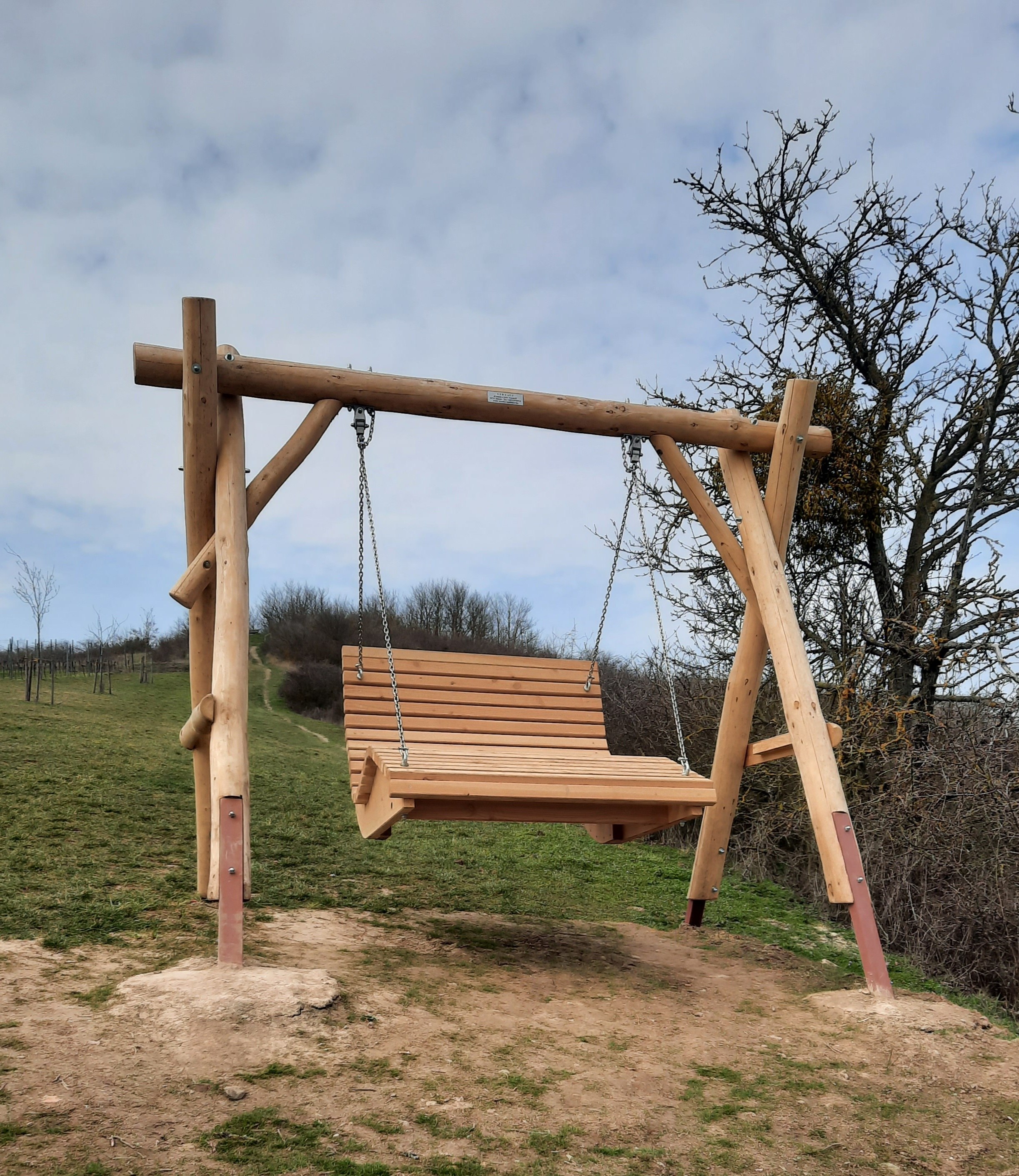 Um die wunderschöne Aussicht entlang des Kulturwegs Petersberg zu genießen wurden daher an ausgewählten Aussichtspunkten wertige Erlebniselementen installiert. Das Highlight ist die Weinbergsschaukel unterhalb der Krypta.