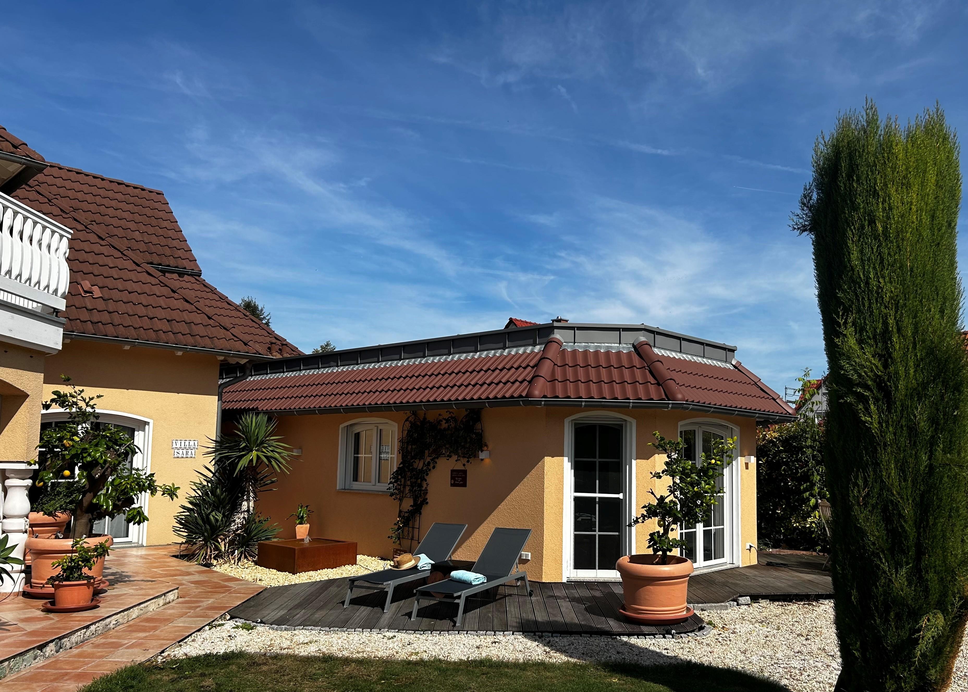 Das charmante, exklusive Ferienhaus "Saras Weinchalet" liegt im Herzen von Rheinhessen, umgeben von Weinbergen, dem Rhein und einer wunderschöner Natur. Rheinhessen ist eine geographische Gemarkung von Rheinland Pfalz und steht neben einer ausgeprägten Weinkultur auch für ein sehr weitreichendes Freizeitangebot. Ob Radtouren, Wandern, Kultur oder einfach Genießen - hier ist für jeden etwas dabei. Saras Weinchalet ist ein neuerstellter Anbau an die bestehende Villa der Eigentümer, verfügt jedoch über einen separaten Eingang. Der großzügige Garten (1200 qm) mit Outdoor Pool (9 x 5 Meter, geöffnet Mai-Okt) kann während Eures Aufenthaltes mitgenutzt werden.