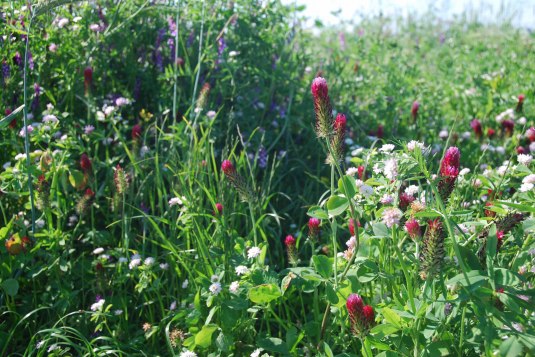 Die „Stickstoffsammler“ wie z.B. Luzerne ziehen nicht nur Insekten an, sondern sorgen dafür, Stickstoff aus der Luft zu binden, um ihn über den Boden den Reben zur Verfügung zu stellen. Das wiederum erspart den Einsatz von synthetischen Stickstoffdüngern, deren Herstellung mit hohen CO2-Emissionen verbunden ist. Darüber hinaus durchdringen sie den Boden mit ihren Wurzeln, lockern ihn und tragen zu einer besseren Vitalität der Böden bei.