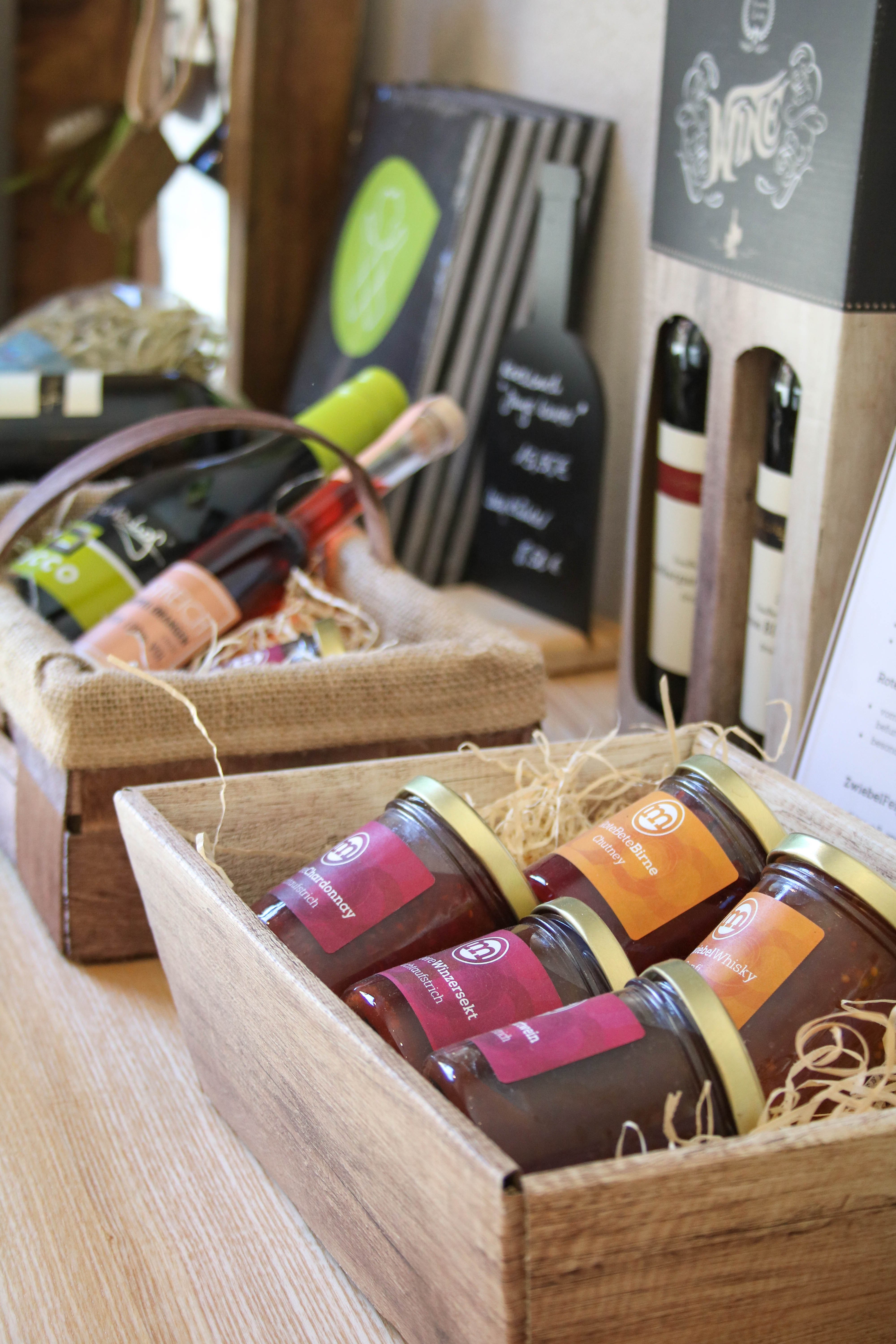 Neben Wein bieten die Vinotheken in Rheinhessen noch weitere Spezialitäten, die entweder direkt vom Weingut oder anderen lokalen Erzeugern produziert werden. Zu Traubensaft, Weingelee und Rieslingessig gesellen sich Produkte aus regionalem Obst oder Gemüse. Ein Kürbis-Apfel-Chutney mit einem Schuss Scheurebe passt garantiert zum Lieblingskäse.