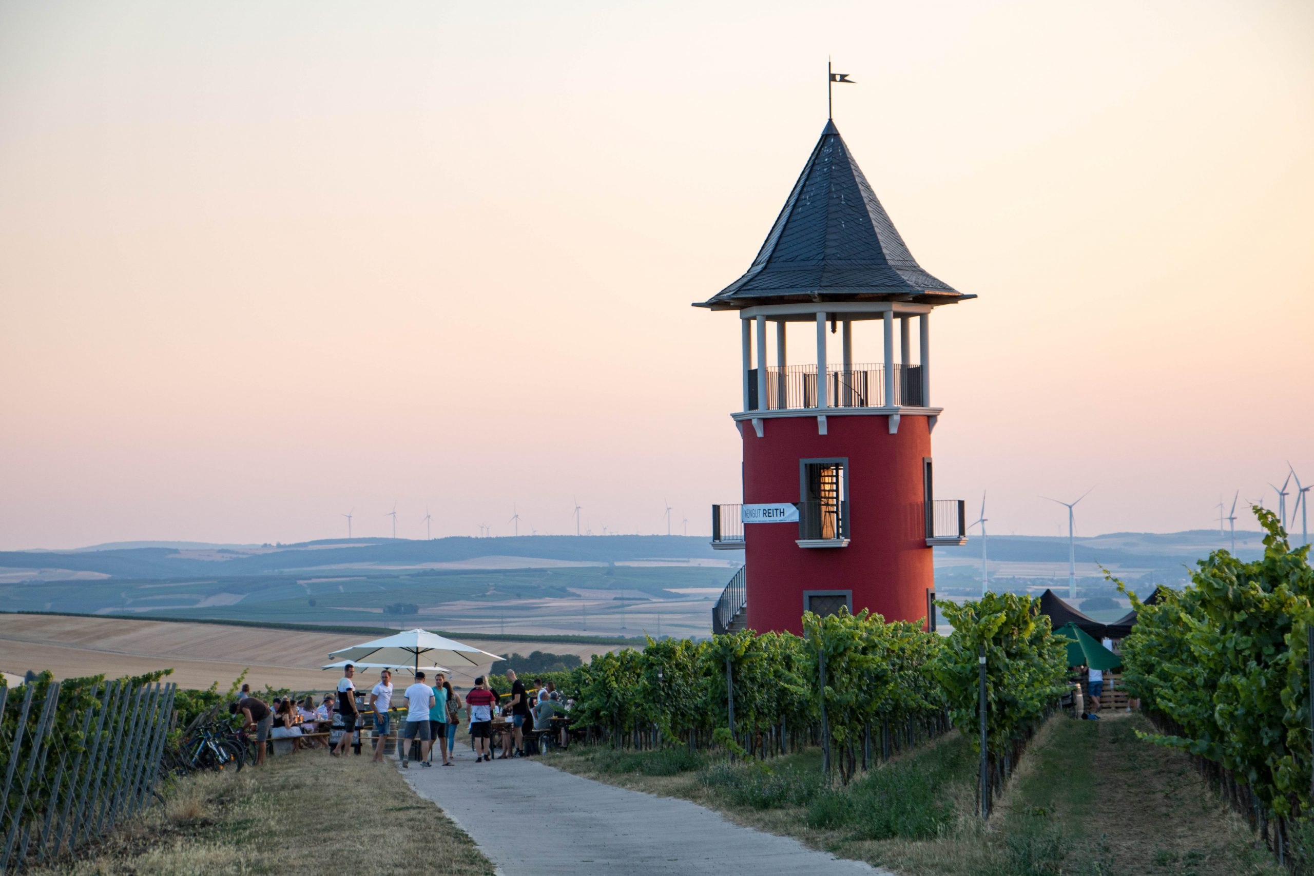 Jedes Jahr gibt es verschiedene Weinstände und Angebote von unterschiedlichen Wörrstädter Weingütern am Burgunderturm und der Hiwweltour Neuborn. Als wir unsere Wanderung in den Abendstunden beenden, startet am Burgunderturm ein ungewöhnliches Weinfest, die Wingert Vibes. Ein Event des Weinguts Reith bei dem neben Wein auch die Musik und die entspannte Atmosphäre im Mittelpunkt stehen.