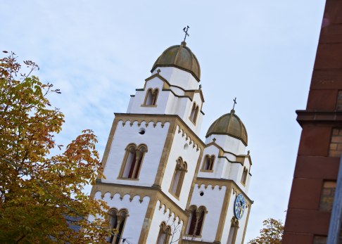 Eindrucksvoll ist die Westfassade der Heidenturmkirche in Guntersblum mit ihren orientalisch anmutenden Türmen. Der Ursprung der Türme liegt in der Zeit der Kreuzzüge. Im Volksmund heißen sie „Sarazenertürme“ oder eben Heidentürme. Ihre Architektur ist nur hier in Rheinhessen noch in Alsheim, Dittelsheim-Hessloch und in Worms zu finden und führt zurück in die Zeit der Kreuzfahrer.