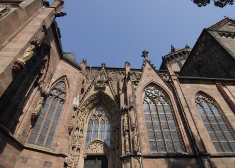 Sieben Könige wurden seit seiner Erbauung im Jahr 975 im Dom gekrönt. Sieben Mal hat der Dom gebrannt, wurde in Kriegszeiten beschossen, aber immer wieder aufgebaut. Heute beeindrucken besonders das gewaltige Domgebirge aus rotem Sandstein, die Grabmale von 45 Bischöfen und der Marienaltar mit der „schönen Mainzerin“.