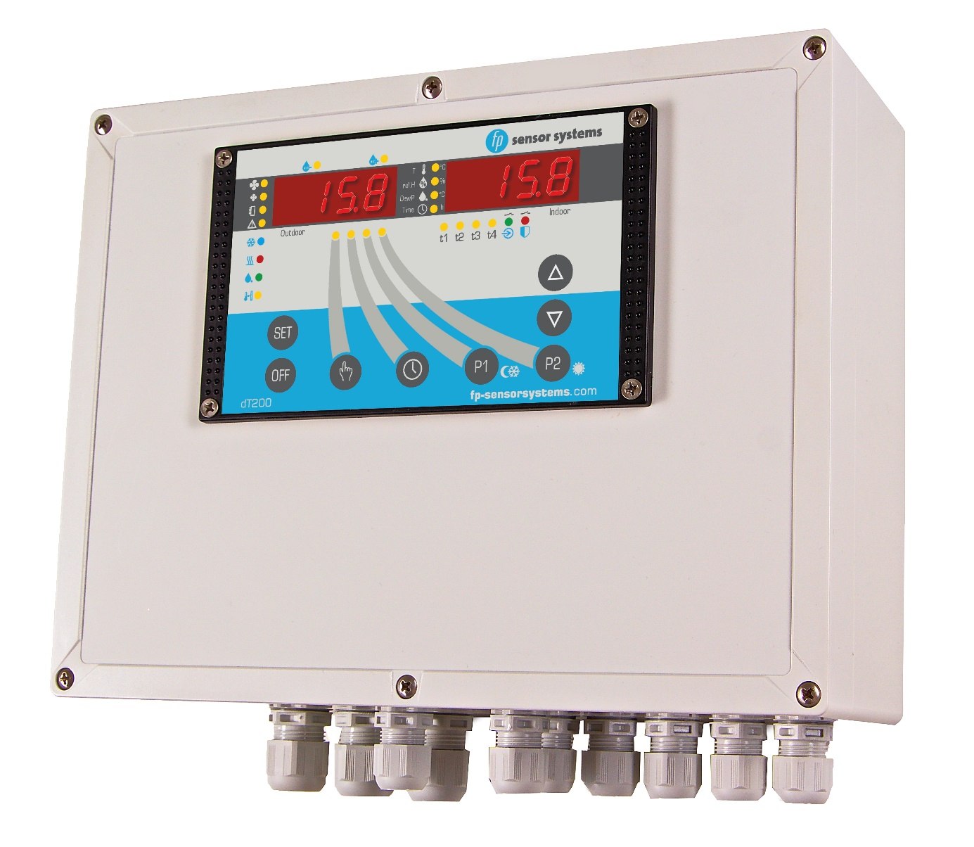 Die intelligente Steuerung dT200 misst permanent Innen- und Außentemperatur sowie die relative Luftfeuchte und ermittelt den Taupunkt. Dieses neuentwickelte Steuerungssystem bietet eine Lösung für die Klimatisierung in immer dichter ausgeführten Gebäudehüllen. Der Betriebsleiter kann darauf mit manuellem oder automatischem Belüften der Gebäude reagieren.