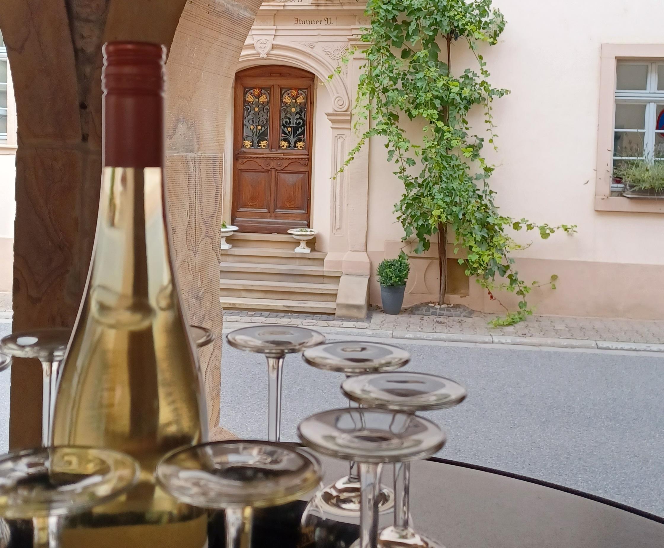 Traditionsreicher Weinausschank unter den Arkaden am historischen Marktplatz in Flonheim. Genießen Sie ein Glas Wein in charmanter und geselliger Atmosphäre.