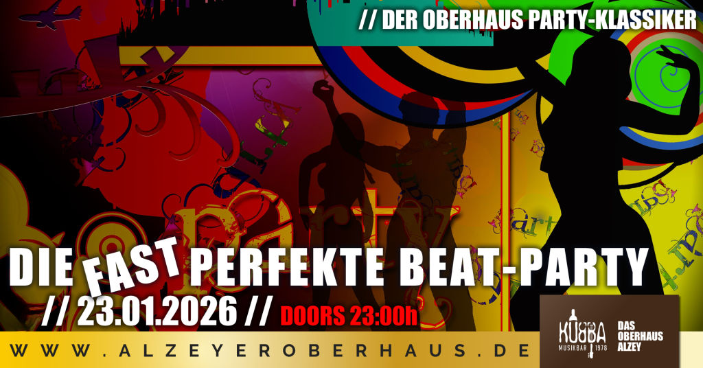 Die BEATPARTY ist wieder da! Der Prozessor taktet auf rhythmischen 80 bis 160 Beats per Minute, der Hauptspeicher ist geladen mit Spaß, Emotionen, kühlen Getränken und geiler Musik. Dieses Jahr habt ihr drei Mal die Gelegenheit beim Reboot dabei zu sein und zu erfahren, was es bedeutet, wenn die fast perfekte Beatparty erneut hochfährt.