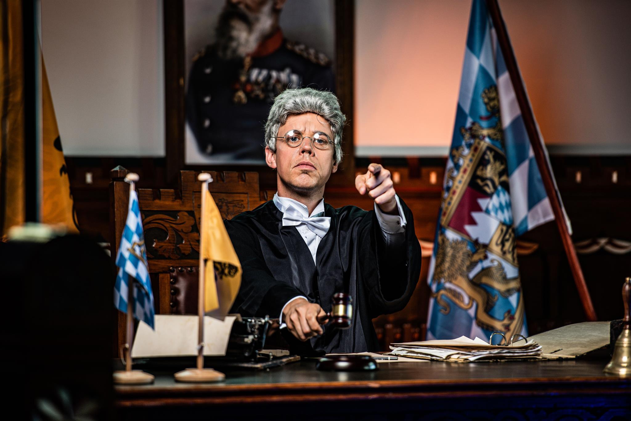Gespielt wird im historischen Amtsgericht von Oppenheim – im Original-Gerichtssaal. Die Zuschauer sind Teil der Verhandlung und damit des Geschehens. Abgerundet wird der Abend durch ein bayerisches Schmankerl-Buffet, kombiniert mit rheinhessischen Weinen.