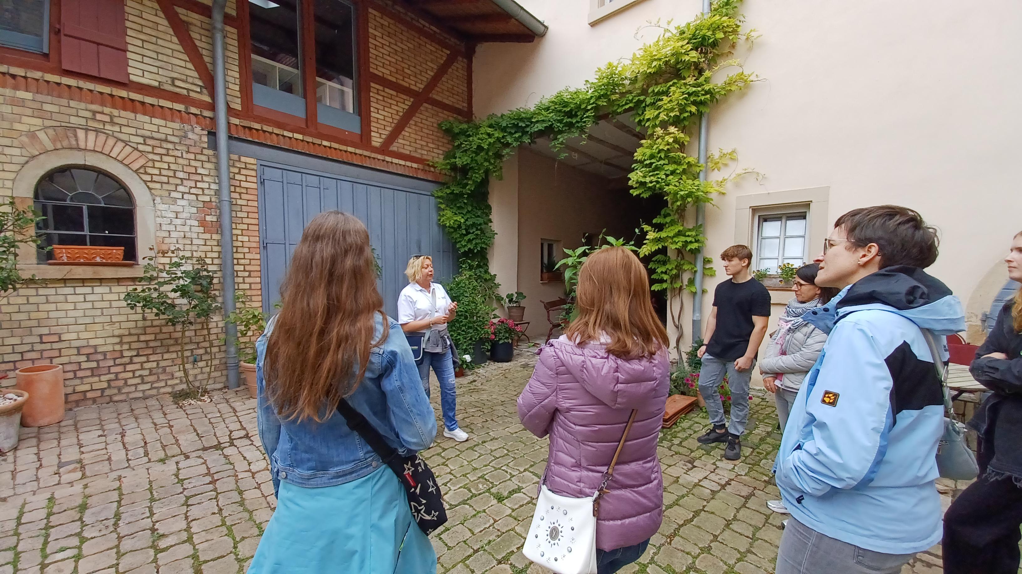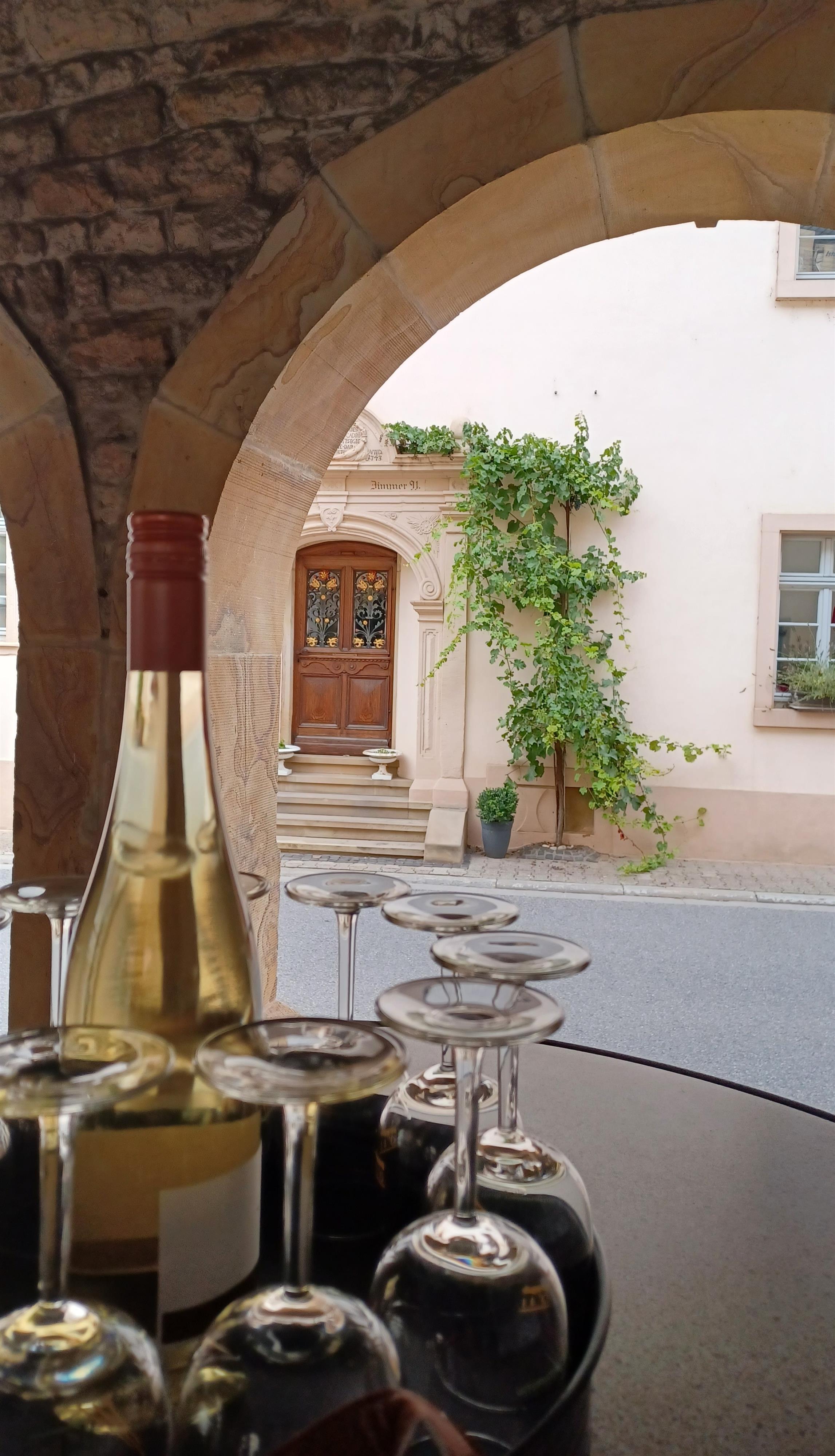 Nach der Führung, geht es zu einem Glas Wein, unter die Arkaden.