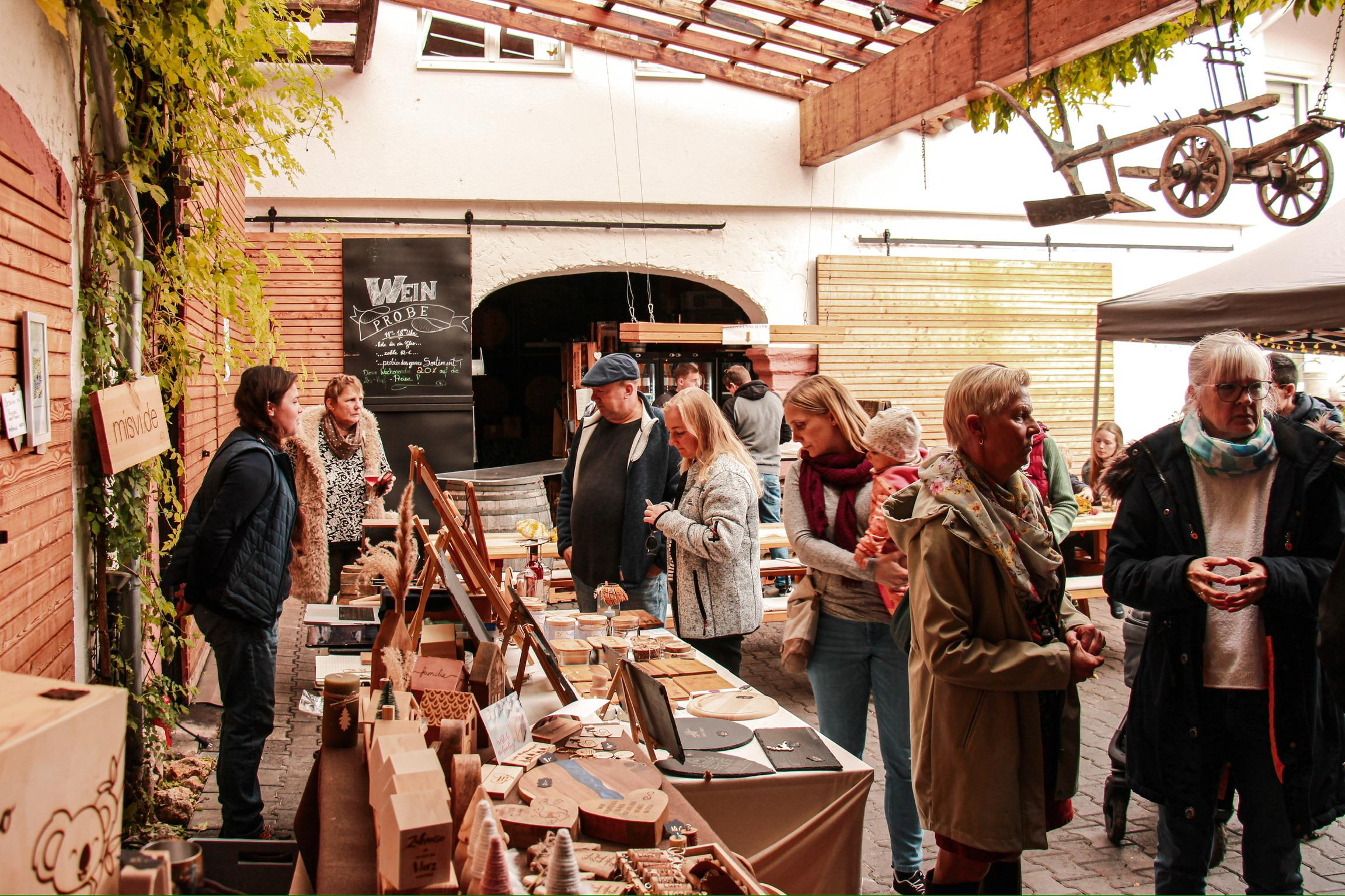 Die Stände füllen unsere Winzerhöfe, den Weedenplatz und das angrenzende Gessel. Zwei Tage lang herrscht ein buntes, fröhliches Markttreiben. Hier gibt es viel zu entdecken – von Kunsthandwerk und Design über feine Köstlichkeiten bis hin zu besonderen Geschenkideen.