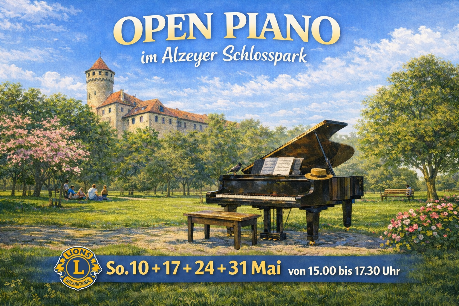 Die Veranstaltung „Open Piano“ findet an den genannten Terminen statt. Der Lions Club Donnersberg stellt einen Flügel zur Verfügung, sodass ein exzellentes Klangerlebnis garantiert ist.