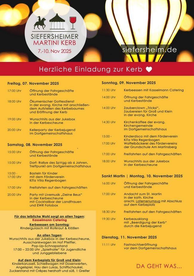 Wir freuen uns auf eine erlebnisreiche Siefersheimer Martini Kerb mit vielen netten Begegnungen.
