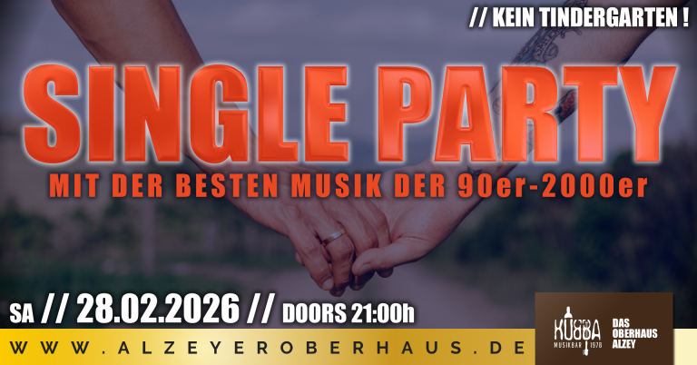 Keinen Bock auf Tindergarten-Wischi-Waschi und Bildzuschrift gleich Antwortgarantie? Dann bist Du hier richtig! Willkommen zur Single-Party im Oberhaus Mit der besten Musik der 90er-2000er.