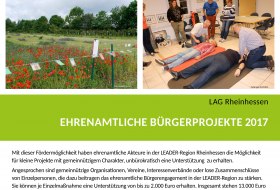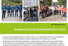 Das Entscheidungsgremium der Lokalen Aktionsgruppe (LAG) Rheinhessen konnte im Rahmen der seit 2017 angebotenen "Förderung ehrenamtlicher Bürgerprojekte" bereits über 100 Vorhaben von Vereinen, gemeinnützigen Organisationen, Interessenverbänden oder Gruppen fördern, die sich ehrenamtlich in der Region engagieren.