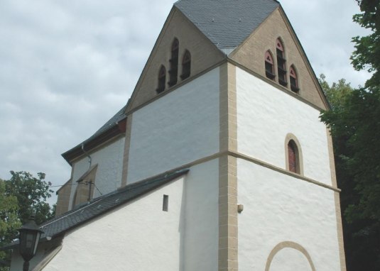 From the village, a large baroque staircase dating from 1741 leads up to the small Catholic church of St.Wigbert. The uniqueness of the console figures as well as the figurative depiction of angels, apostles and the decorative painting make the church an important architectural monument of the Middle Rhine region. Particularly worth seeing are the Romanesque choir room from 1107, the new diamond-shaped roof from around 1850, Gothic wall paintings from the 15th and 16th centuries and the rich Neo-Gothic carved altar from 1887 with St. Boniface, St. Lioba and St. Wigbert.