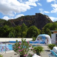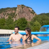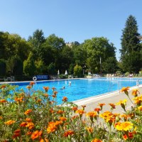 The outdoor pool impresses with its picturesque location. It adjoins the spa park Bad Münster am Stein. It features a 25-meter swimming pool, a children's pool, and a thermal pool that is fed by a healing spring. Throughout the season, many special events, such as gymnastics courses, are offered, which are announced on the website. The outdoor pool is run with a lot of volunteer efforts by a swimming pool association of residents.