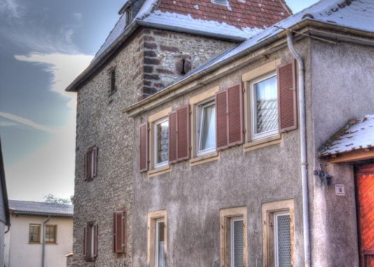 Built in the 14th century. The lords of Kriegsheim built this building, which is probably the oldest preserved residential building in the municipality. In the 16th century, the residential tower belonged half to the Counts of Leiningen-Hartenberg and half to those of Rodenstein. The three-storey building radiates a certain security and tranquillity, which the observer still feels today. The residential tower is privately owned. Text taken from Rundgang Kriegsheim with kind permission.