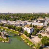 The promenade is centrally located and well connected: By bike, by bus, or on foot – you can easily get anywhere. If you're traveling by car, it's best to use the parking garage Rathaus/Rheingoldhalle or the underground car park at Malakoff Passage.