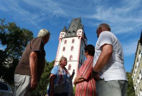According to historical maps, this round and two storey fortified tower with a pointed stone cone shaped roof was to the south-east of the old defences. The former eastward section of the wall led, across the later Neuweg, towards the Uffhubtor. The tower dates from the first half of the 15th century. This style of tower is most frequent in Ober-Ingelheim. In the 19th century they were often transformed to condominiums.