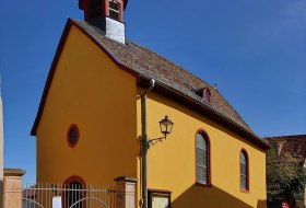 The rectangular hall building is medieval at its core and was rebuilt in 1616. The west tower of today's Protestant parish church dates back to 1914.